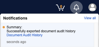 When exporting Object Record Audit History or Document Audit History, Vault sends a notification once the export is complete, and you can download the export file from the notification: